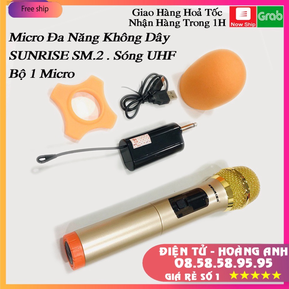 MICRO KHÔNG DÂY ĐA NĂNG SUNRISE SM.2 CAO CẤP - MIC HÁT CỰC NHẸSản phẩm mới nguyên hộp 100% có kèm ảnh chụp thật, cam kết hàng như hình 1000%