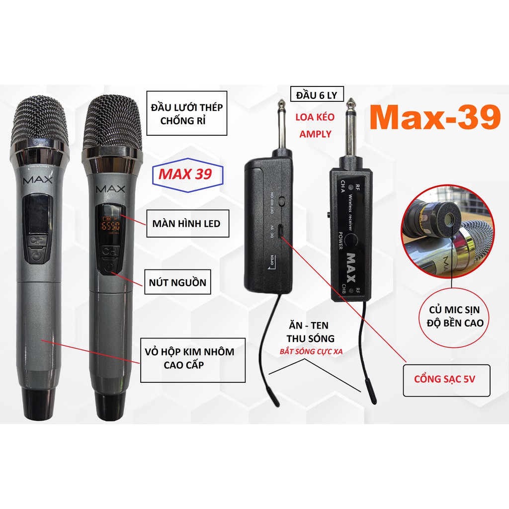 Thiết Bị Âm Thanh > Micro thu âm || Micro Không Dây Karaoke Max 19 & Max 39, Mẫu Mới 2021, Màn Hình LED, Chống Hú Tốt, Hát Nhẹ, Sóng Mạnh, Âm Thanh Cực HayCòn hàng