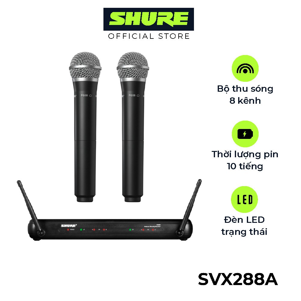 Bộ Micro không dây Shure SVX288A/PG58- J9 Chính Hãng – Micro cao cấp dành cho coffee, phòng trà, karaoke, tiệc cưới