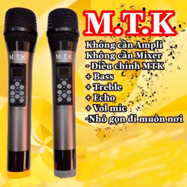 Sản phẩm : MICRO KHÔNG DÂY M.T.K - Tích Hợp Tùy Chỉnh Bass, TrebleHỖ TRỢ CHỈNH BASS – TREBLE – ECHO NGAY TRÊN THÂN MIC