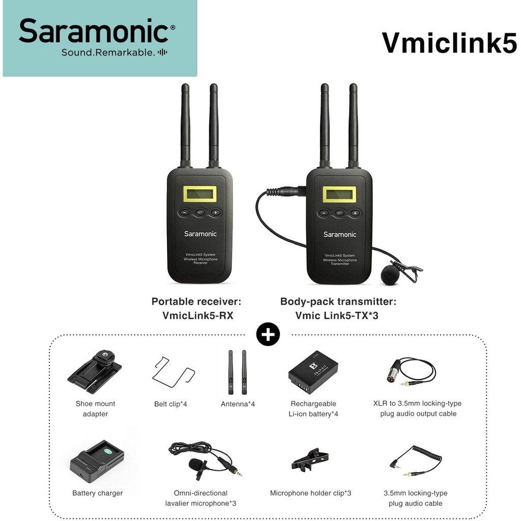 Micro không dây Saramonic VmicLink5 RX+ 3TX (5.8 GHz) - Bảo hành 12 tháng
