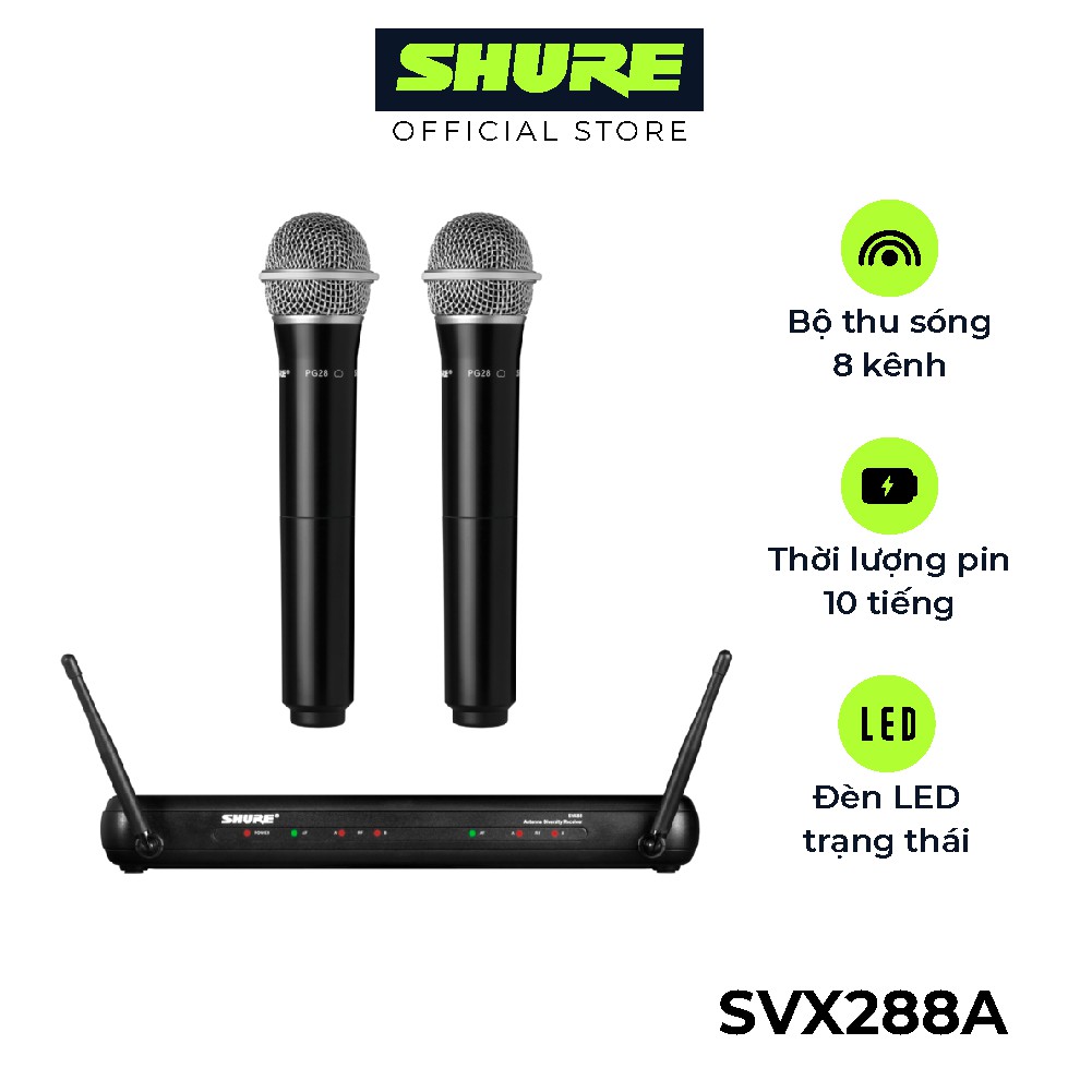 Thiết Bị Âm Thanh > Micro thu âm || Bộ micro không dây Shure SVX288A/PG28 - Hàng chính hãng - Micro Shure cao cấp cho phòng trà và KaraokeCòn hàng