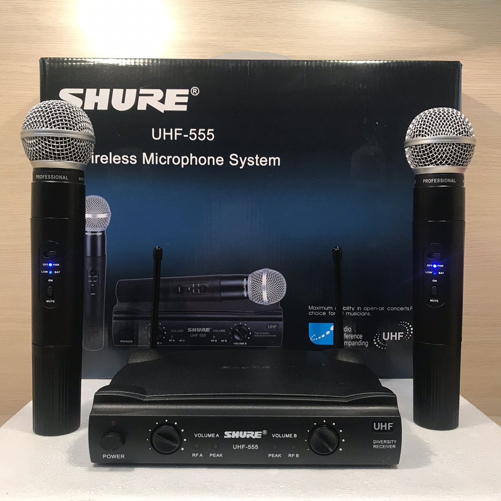 Bộ micro không dây shure UHF555 nâng cao giọng hát