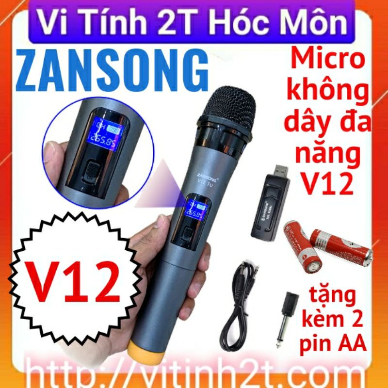 Tiếp nối mic v10 cực kỳ thành công là mic V12 với chất lượng được nâng cấp lên một mức mới cho âm thanh trung thực, nhẹ nhàng, đảm bảo mang đến sự hài lòng cho khách sử dụng. Đặc biệt mic có màn hình LCD hiển thị cực kỳ hiện đại. Kết nối rất đơn giản. Dùng 2 viên pin 2A tiện lợi. Trọn bộ gồm: mic + dây 2 đầu 3.5mm + cục chuyển 6.5mm + usb thu sóng. Kết nối đơn giản chỉ cần cắm usb thu vào cổng usb của loa, ampli, tivi, hoặc cốc sạc nếu trên thiết bị không có cổng usb...để lấy nguồn cấp điện. Sau đó nối dây 3.5mm vào usb và cục chuyển 6.5mm vào ngõ mic trên loa/ampli là đã sử dụng được. Đặc biệt chú ý: jack 3.5 khi cắm vào đầu chuyển 6.5 phải cắm sát vào nhau vì nó có tới 2 khớp thì micro mới lên tiếng nha ae Thích hợp cho mọi thiết bị hát karaoke. Trên thị trường hiện có nhiều sản phẩm micro có chất lượng tốt có dây và không dây hút âm tốt và ấm nhưng giá không hề dễ chịu chút nào. Micro không dây v12 sẽ là lựa chọn phù hợp với giá chỉ tương đương một có dây mà lại là sản phẩm không dây nhỏ gọn Đặc biệt sản phẩm rất gọn bộ thu tín hiệu tương đương bằng một Usb không cồng kềnh như các micro không dây hiện nay. Thông số kĩ thuật: + Model ; V12 loại micro đơn + Dãi tần số hoạt động : UHF 668~680 mhz + Khoảng cách hoạt động : 7m ~ 10met + Cấp nguồn micro : 2 pin AA 1.5v (quý khách tự trang bị, hoặc đặt thêm) + Cấp nguồn bộ thu tín hiệu : cổng usb trên loa/amply hoặc cốc sạcGiá AWARE