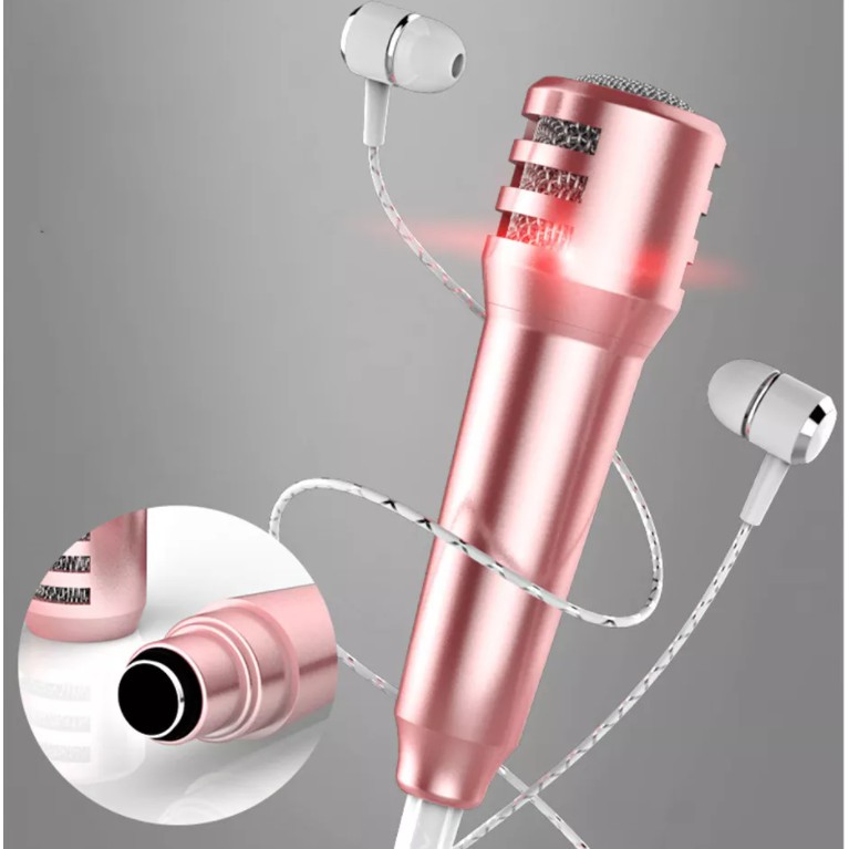 Micro Mini hát Karaoke, Mic Kèm Tai Nghe Dùng Cho Điện Thoại - Jack 3.5mm