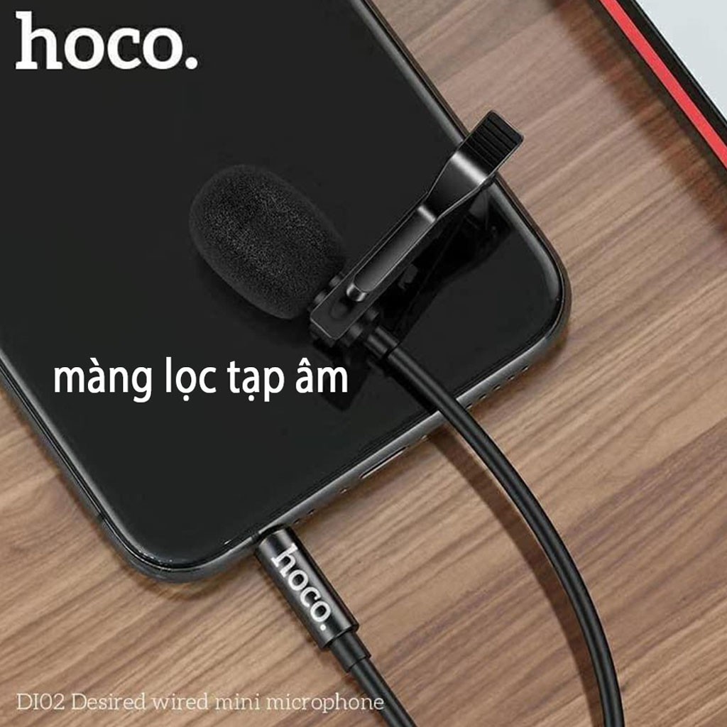 Micro mini Hoco DI02 jack cắm 3.5mm, có màng lọc tạp âm, độ thu âm nhạy, có kẹp giữ thiết bị chắc chắn, tiện lợi, dài 2m