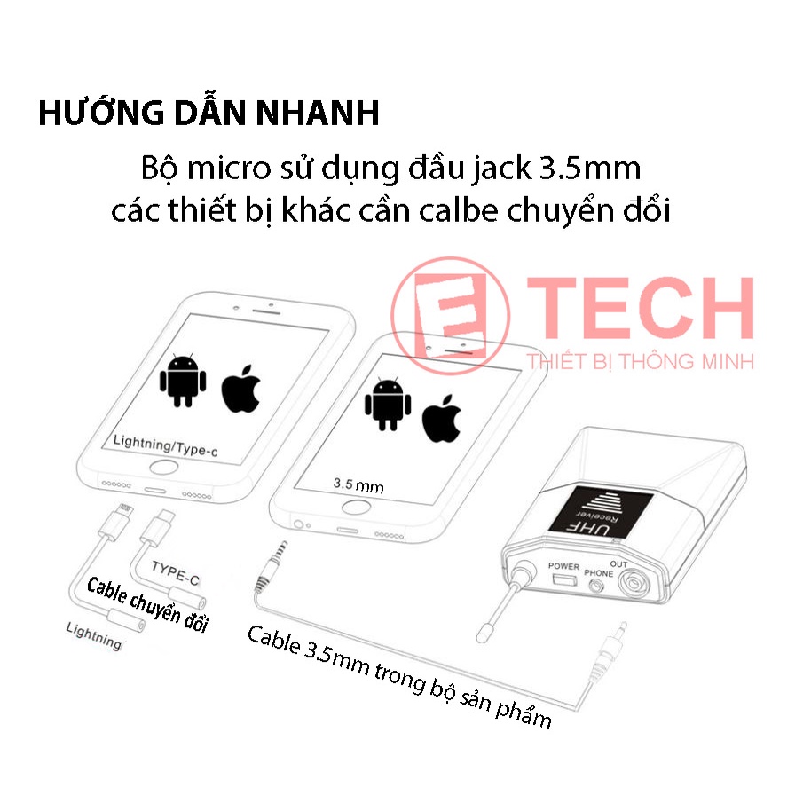 -Tự động kết nối không dây, không cần phải cài đặt tần số điểm. Ngay khi khởi động, thiết bị sẽ tự động kết nối thành công.