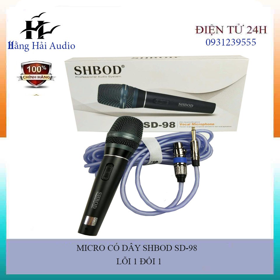 MICRO SHBOD SD_98 ( HÀNG CHÍNH HÃNG , SẢN PHẨM BỀN ĐẸP THU ÂM TỐT ) Dây theo micro dài 7m