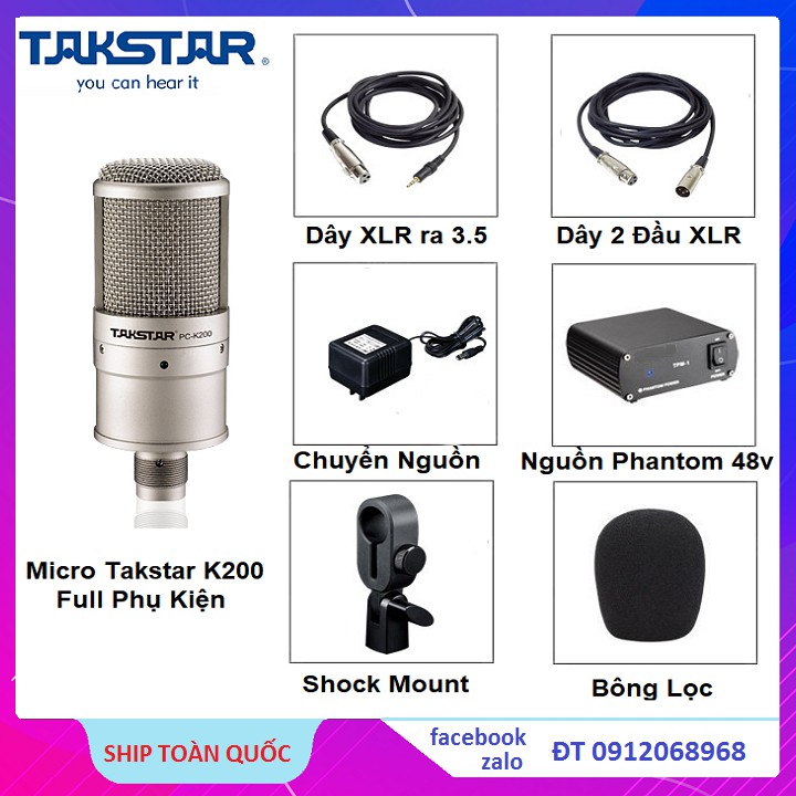 - Micro condenser Takstar PC-K200 SuitePC-K200 nằm trong Series micro condenser của Takstar thuộc dòng micro thu âm tốt nhất của Hãng. Micro PC-K200(Suite) được thiết kế đặc biệt cho việc thu âm để hát karaoke trên máy tính. Là bộ sản phẩm trọn gói gồm những thiết bị cơ bản nhất để tao lên một phòng thu tại gia cho bạn.