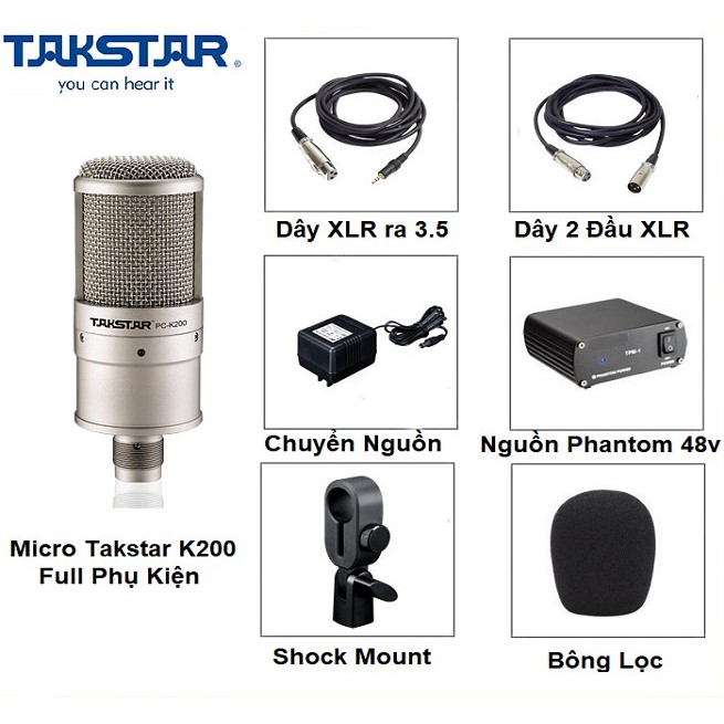 TRỌN BỘ SẢN PHẨM BAO GỒM: Micro condenser Takstar PC-K200 Suite