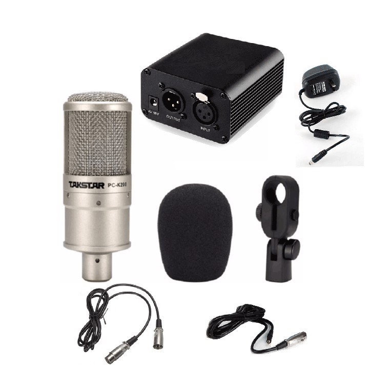 Micro Takstar PC K200, Thu Âm Chuyên Nghiệp Live Stream Và Nguồn Phantom 48v, Dây Giắc Đầy Đủ
