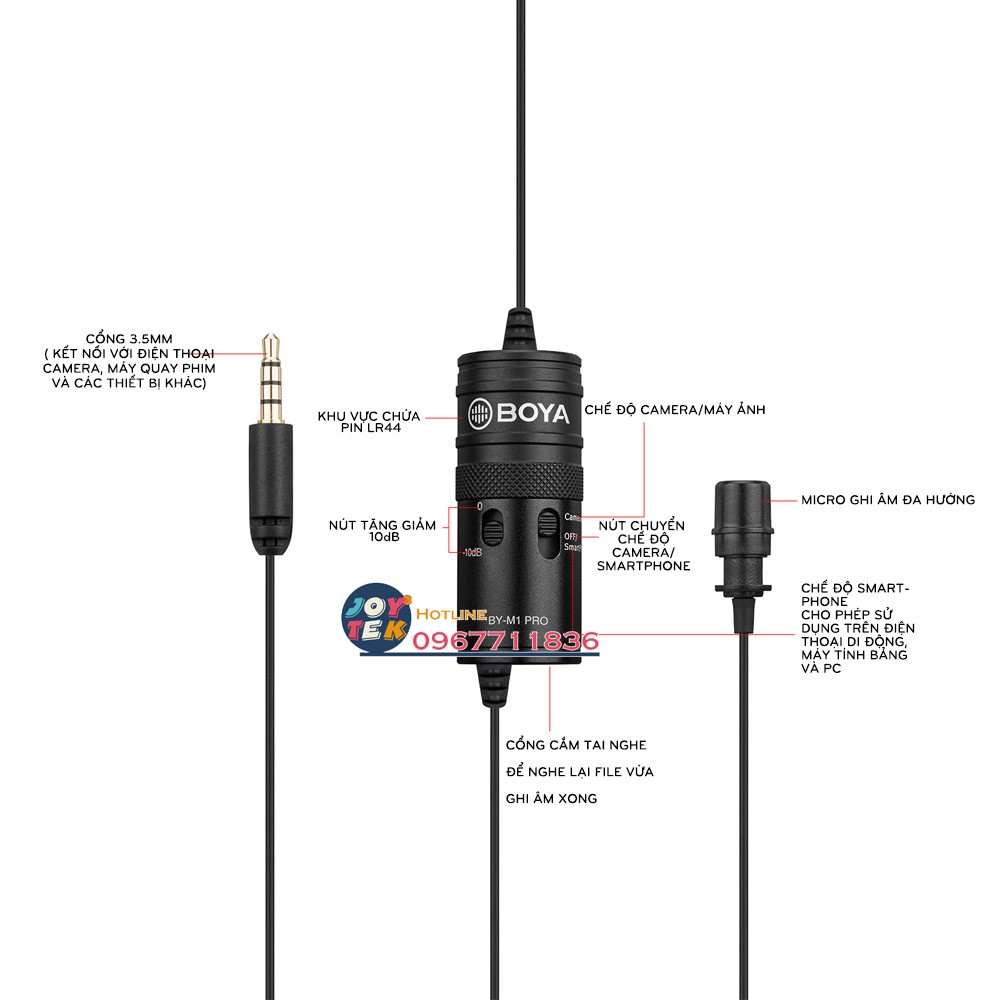 Micro thu âm Boya M1 PRO- Micro ghi âm cho điện thoại máy tính dùng dạy học livestream làm vlog - Hàng chính hãng boya