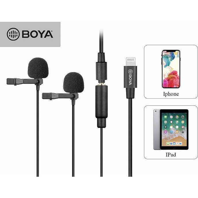 Micro thu âm cài áo BOYA BY-M2D là một micro lavalier kỹ thuật số kép, nó giúp thu được âm thanh rõ ràng và chất lượng cao hoạt động với các thiết bị di động iOS. Với micro lavalier kép, nó cung cấp khả năng thu âm lời nói chính xác của hai đối tượng để podcast, ghi âm, phỏng vấn, ghi âm nhạc, phát trực tiếp và nhiều hơn nữa.THÔNG SỐ KỸ THUẬT:
