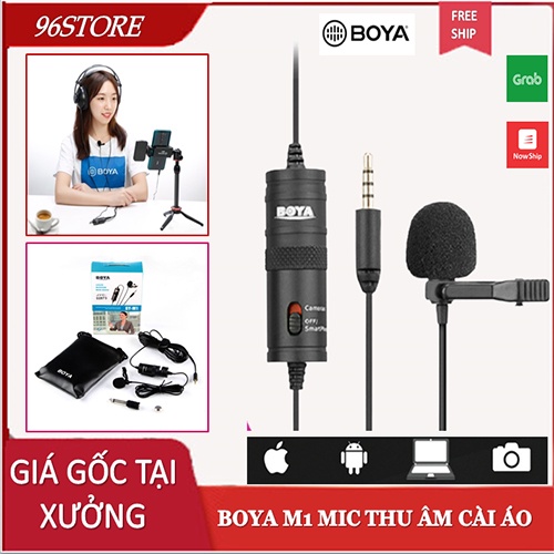 - Bao test 1 đổi 1 trong 1 thángMicro gài áo Boya BY-M1 là sản phẩm mic cài áo nhỏ gọn, tương thích với mọi loại smartphone, máy tính bảng, máy ghi âm, máy quay, máy ảnh, Pc, laptop... Các thiết bị thu âm có cổng 3.5mm.