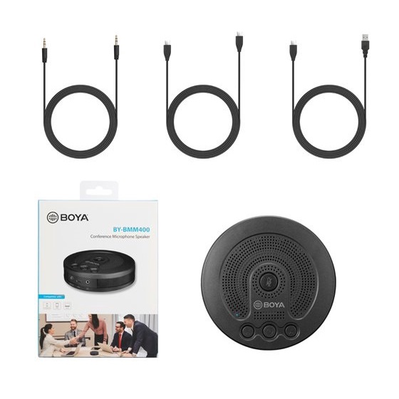 Micro thu âm hội nghị đa hướng BOYA BY-BMM400 là sản phẩm lý tưởng để quay video và hội nghị cuộc gọi điện thoại. Nó có tính năng với tất cả các loại cáp cần thiết (cáp kết nối TRRS 3,5 mm / cáp kết nối Type-C / cáp kết nối Type-C với USB A, giúp bạn có thể hoạt động với điện thoại thông minh, máy tính bảng, PC và máy nghe nhạc MP3 và hơn thế nữa. Sản phẩm micro BY-BMM400 chính hãng BOYA được bán tại thietbiquayphim.com với giá tốt nhấtTHÔNG SỐ KỸ THUẬT BY-BMM400: