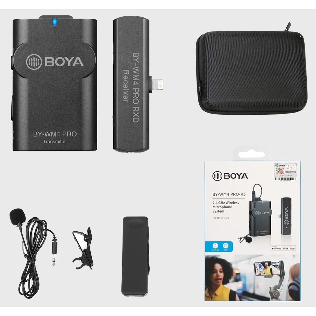 - Microphone BOYA BY-WM4 Pro-K3 là một thiết bị nổi bật đến từ thương hiệu quen thuộc BOYA, với kích thước và trọng lượng khá nhỏ gọn.Microphone BOYA BY-WM4 Pro-K3 là hệ thống Micrô không dây 2.4GHz thế hệ mới, tiên tiến và hiện đại. Chiếc Micro thu âm không dây của Boya được thiết kế nhỏ gọn, kết hợp với kẹp để dễ dàng gắn lên áo, quần áo.