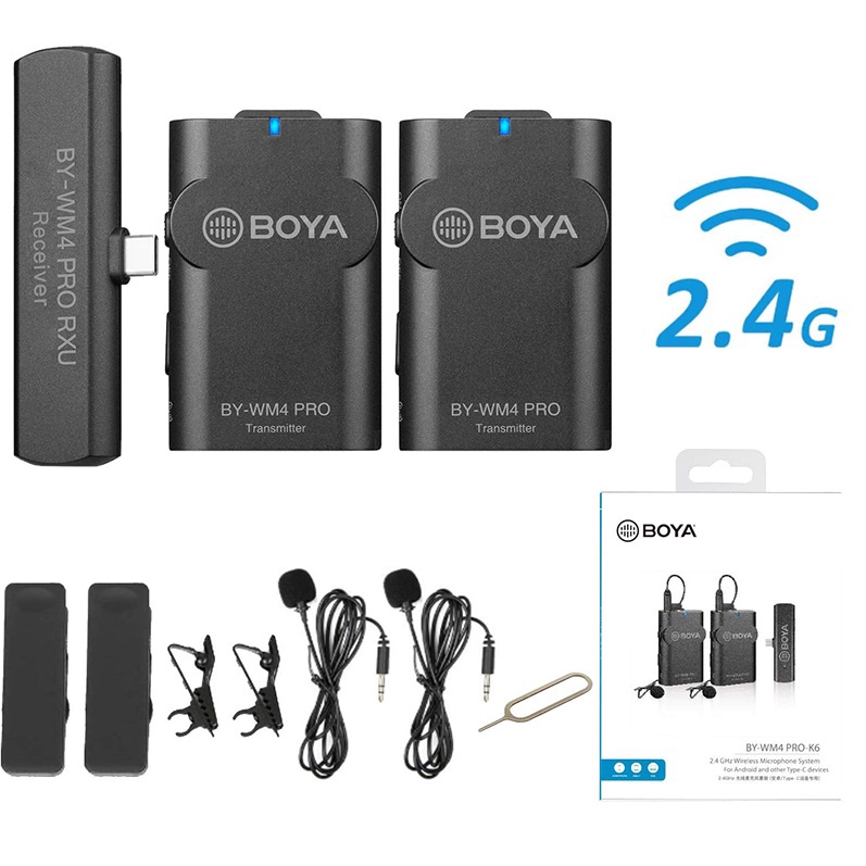 - Microphone BOYA BY-WM4 Pro-K6 là dòng sản phẩm micro không dây của hãng BOYA sản xuất, với kích thước và trọng lượng khá nhỏ gọn.Microphone BOYA BY-WM4 Pro-K6 có thể sử dụng trực tiếp trên các thiết bị hỗ trợ giao diện kết nối qua cổng Type-C, là thiết bị hữu ích giúp mang lại cho bạn những video hoàn hảo nhất về cả hình ảnh hay chất lượng âm thanh.