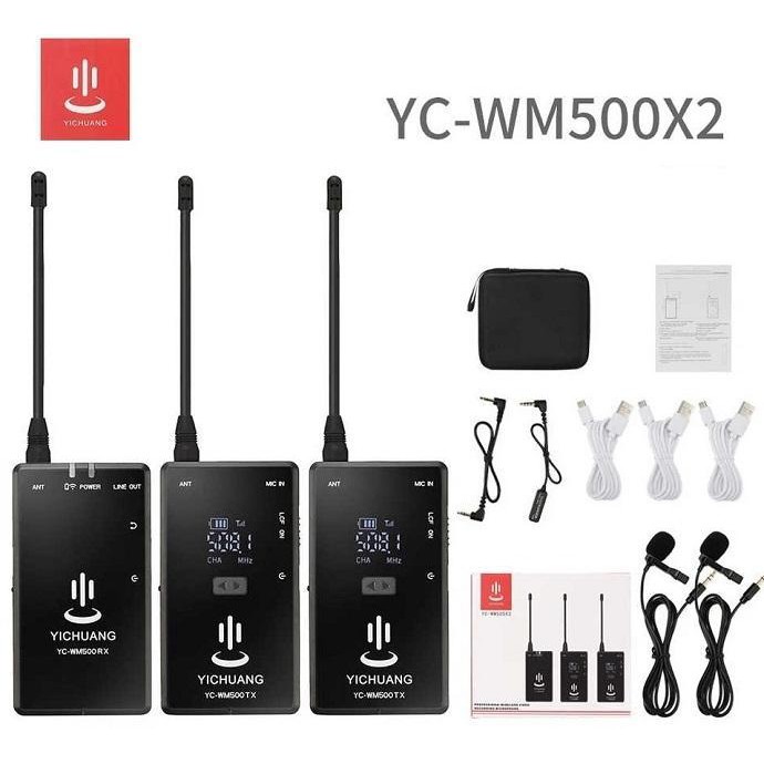 Micro thu âm không dây cài áo 2 người YC-WM500X2 là một dòng micro mới của hãng sản xuất YICHUANG. Bộ mic sử dụng 4 kênh chuyển đổi khác nhau để tránh nhiễu với khoảng cách thu xa lên đến 50m không có vật cản, là một thế hệ mới lý tưởng cho các cuộc phỏng vấn, sản xuất blog video với kích thước nhỏ gọn dễ sử dụng. Ngoài ra mic YC-WM500X2 chính hãng YICHUANG còn được tích hợp pin sạc với khả năng quay liên tục từ 6-8h.THÔNG SỐ KỸ THUẬT: