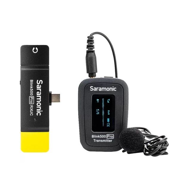 Micro thu âm không dây Saramonic Blink 500 Pro B5 bao gồm một bộ thu RXUC và một bộ phát clip-on sử dụng trực tiếp trên các thiết bị hỗ trợ giao diện kết nối qua cổng Type-C. Saramonic Blink 500 Pro B5 được nâng cấp từ phiên bản Blink B5 có một ưu điểm nổi bật đó là màn hình OLED sống động giúp dễ đọc dễ theo dõi các thao tác sử dụng, cũng như cải thiện âm thanh chất lượng cao hơn. Đầu ra tai nghe 3.5 mm giúp nghe trực tiếp từ bộ phát.THÔNG SỐ KỸ THUẬT: