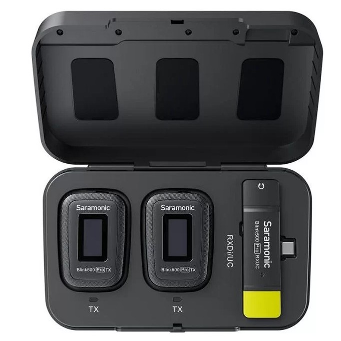 Micro thu âm không dây Saramonic Blink 500 Pro B6 là phiên bản nâng cấp từ Blink 500 B6 với việc trang bị thêm màn hình OLED, hộp sạc không dây và khả năng đem lại âm thanh vượt trội. Saramonic Blink 500 Pro B6 dùng cho 2 người bao gồm 1 bộ thu và 2 bộ phát, phù hợp với công việc thu âm, các cuộc phỏng vấn, trò chuyện, talkshow,…THÔNG SỐ KỸ THUẬT: