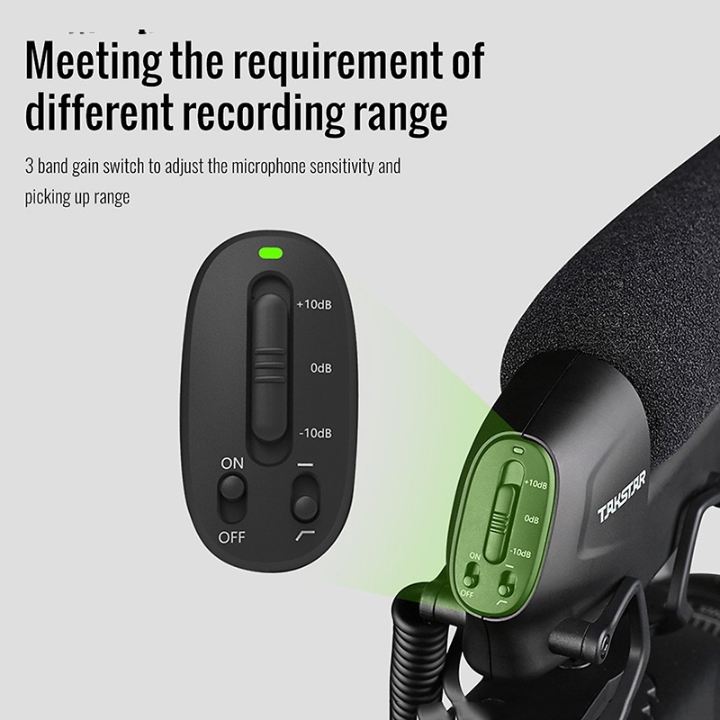 3 nấc chỉnh âm lượng, có thể điều khiển độ nhạy microtùy vào khoảng cách đón âm khác nhau, dễ dàng thu được âm thanh xa và gần.
