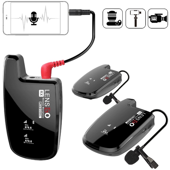 Microphone LensGo 308C là một hệ thống Micro kép không dây sử dụng sóng Wireless vô cùng chuyên nghiệp và tiện lợi. Microphone LensGo 308C giúp thu âm thanh rõ nét trung thực cho Smartphone, máy ảnh DSLR, máy quay của bạn.Trong điều kiện lý tưởng, không có vật cản, thiết bị thu có thể thu ở khoảng cách 50 m.