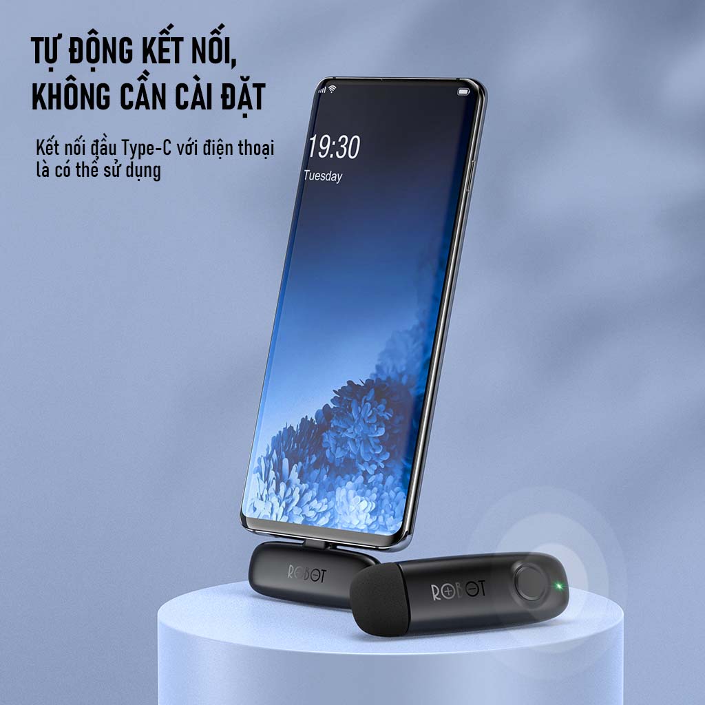 Microphone Không Dây ROBOT RS20 Nhỏ Gọn Tiện Dụng Khoảng Cách Kết Nối 10m Qua Cổng Type-C Dùng Cho Điện Thoại Android