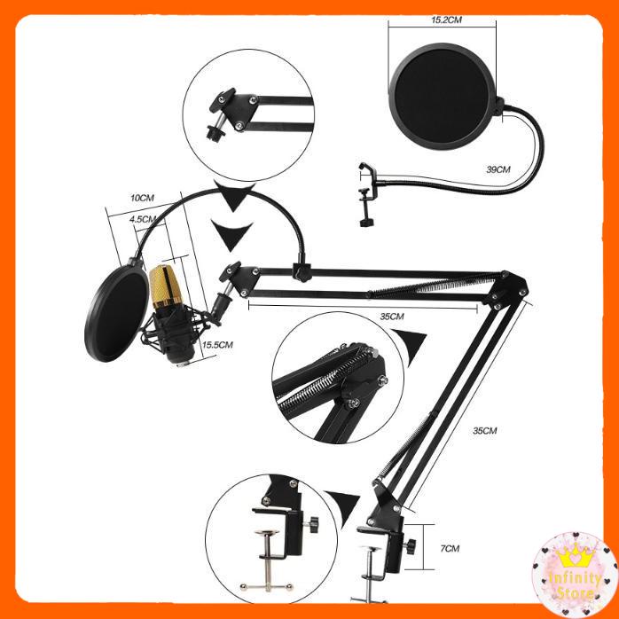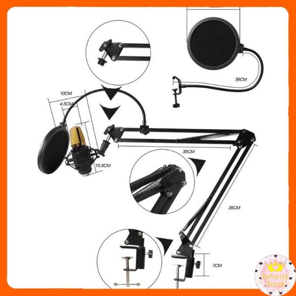 Thiết Bị Âm Thanh > Micro thu âm || [Mã 273ELHA100K0 hoàn 7% đơn 500K] MICROPHONE THU ÂM BM-800 TRỌN BỘ THANH ĐỠ LỌC ÂM INFINY DECORCòn hàng