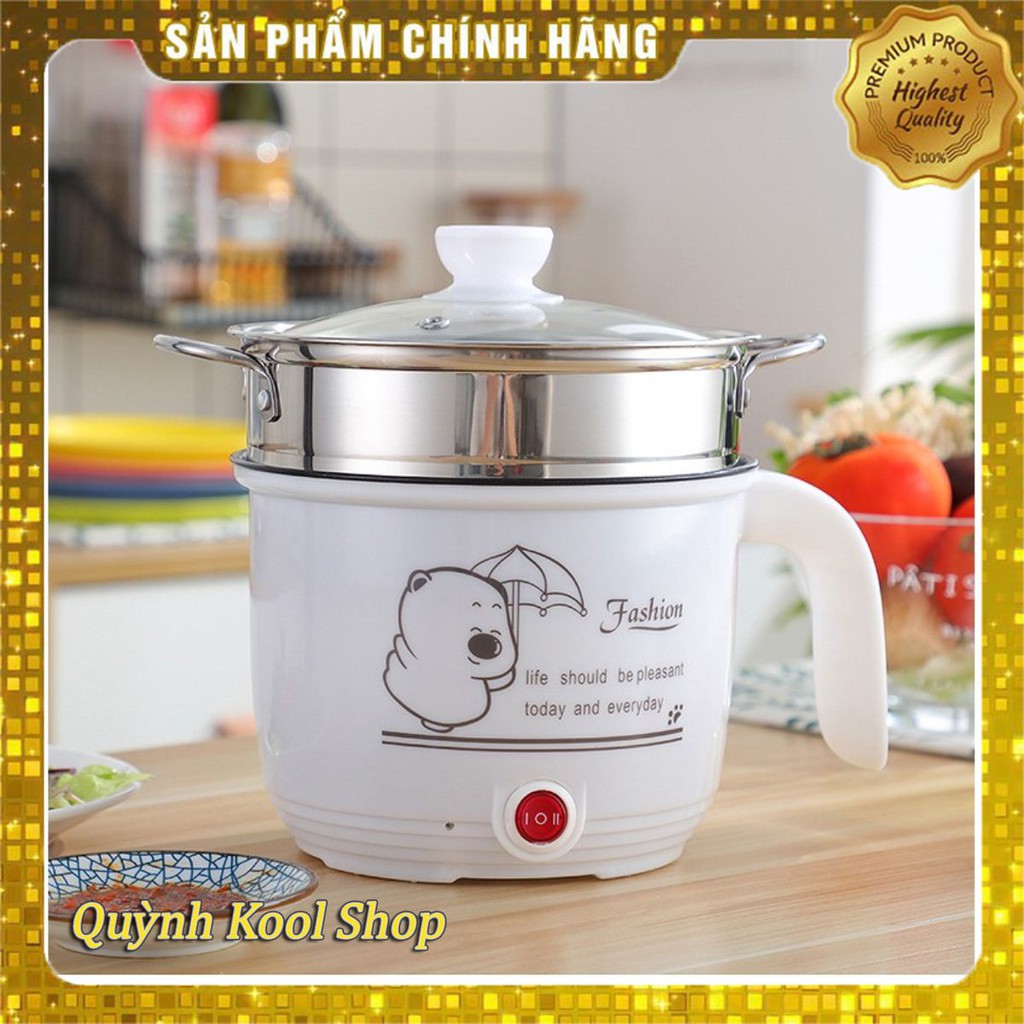 [MIỄN PHÍ VẬN CHUYỂN] Ca Nấu Mì Đa Năng Có Tay Cầm 1,8L - Nồi Lẩu Điện Mini Kèm Giá Hấp INOX + 1 Khay Luộc Trứng