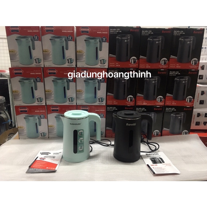 Giới thiệu (Miễn ship)Ấm siêu tốc Sunhouse 1530 , Baretti BRB 182 Hàng chính hãng bảo hành toàn quốc
