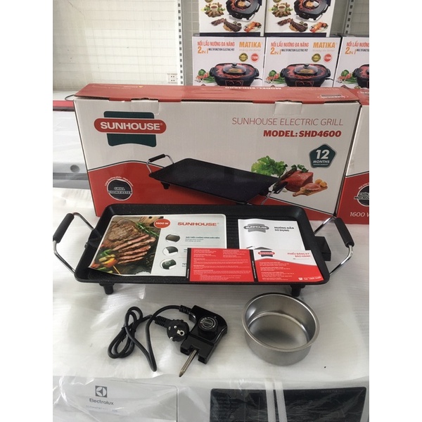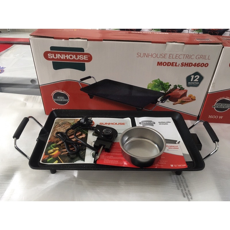 - Bếp nướng điện SUNHOUSE SHD4600 là sản phẩm bếp nướng hiện đại, tiện dụng sử dụng điện năng để nấu thực phẩm, bề mặt bếp được phủ lớp chống dính đá hoa cương truyền nhiệt nhanh hơn, giữ nhiệt lâu hơn. Bếp nhiều chức năng như: nướng, chiên, xào, rán bạn có thể thảo sức để sáng tạo món ăn. Hoạt động với công suất 1600W nướng thực phẩm nhanh hơn, thiết kế hình chữ nhật có thể nấu được nhiều thức ăn hơn.