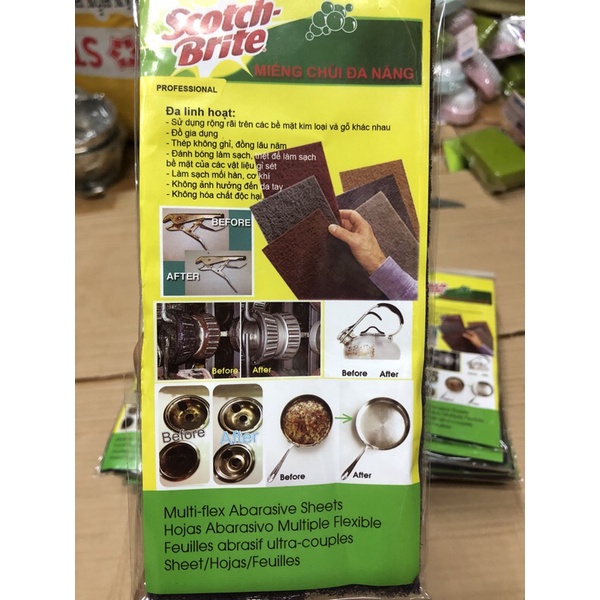 Nhà cửa & Đời sống > Dụng cụ chăm sóc nhà cửa > Miếng bọt biển, miếng chà vệ sinh || Miếng chùi nồi 3M Mỹ làm bóng nồi chảo Miếng đánh bóng bề mặt inox kim loại cước chùi bóng kim loại gỗ Scotch BriteCòn hàng