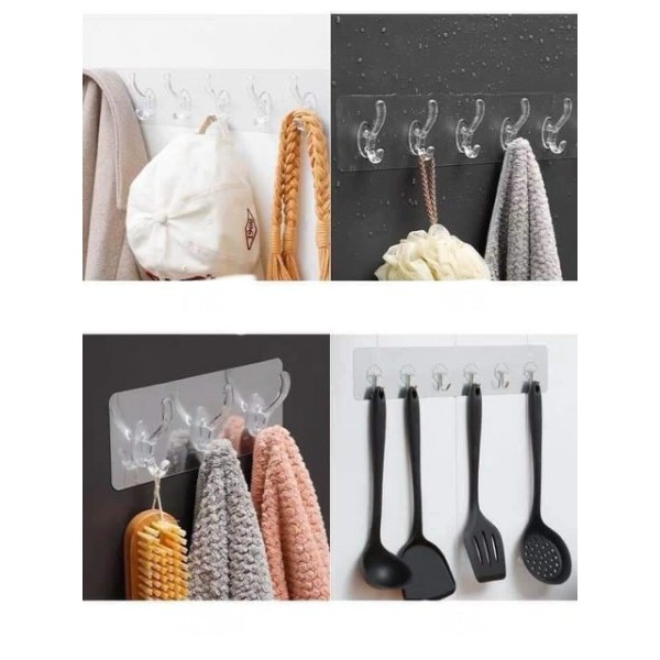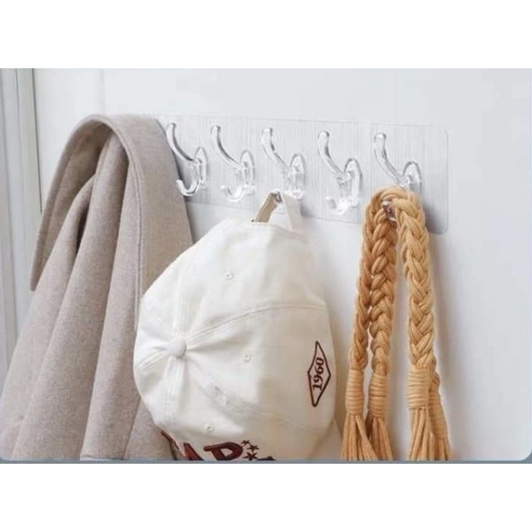 Miếng Dán 6 Móc Treo Đồ Dán Tường Siêu Dính Chịu Lực Đa Năng Trong Suốt - 7