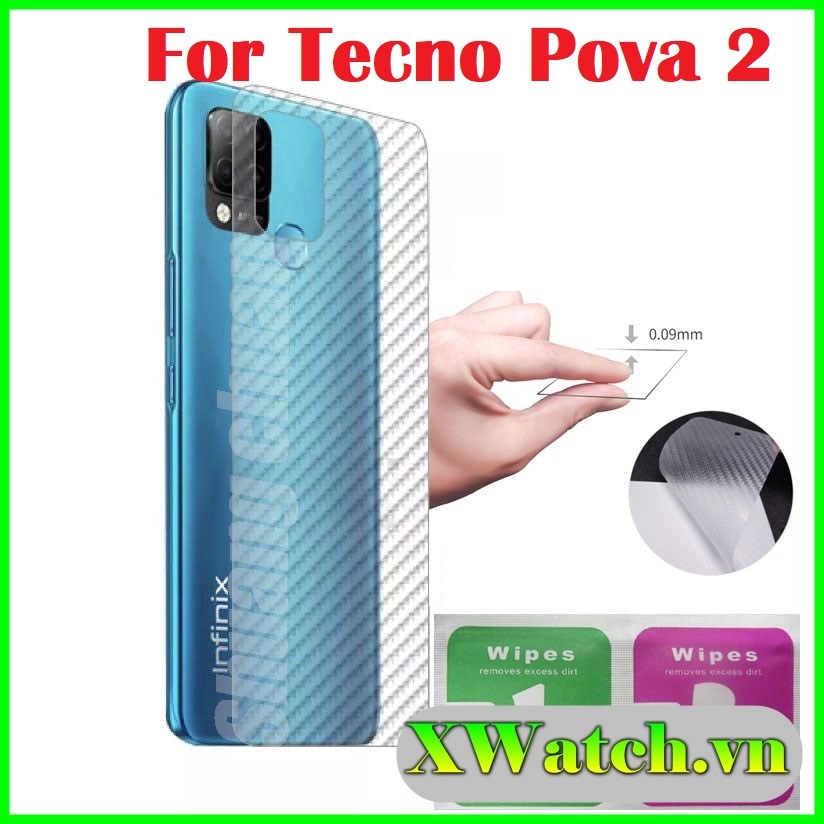 Miếng dán carbon mặt lưng Tecno Pova 2 Spark 8C Pop 5 Lte Spark 7 Spark 7T Spark 6 Go bảo vệ lưng máy chống bám vân tay