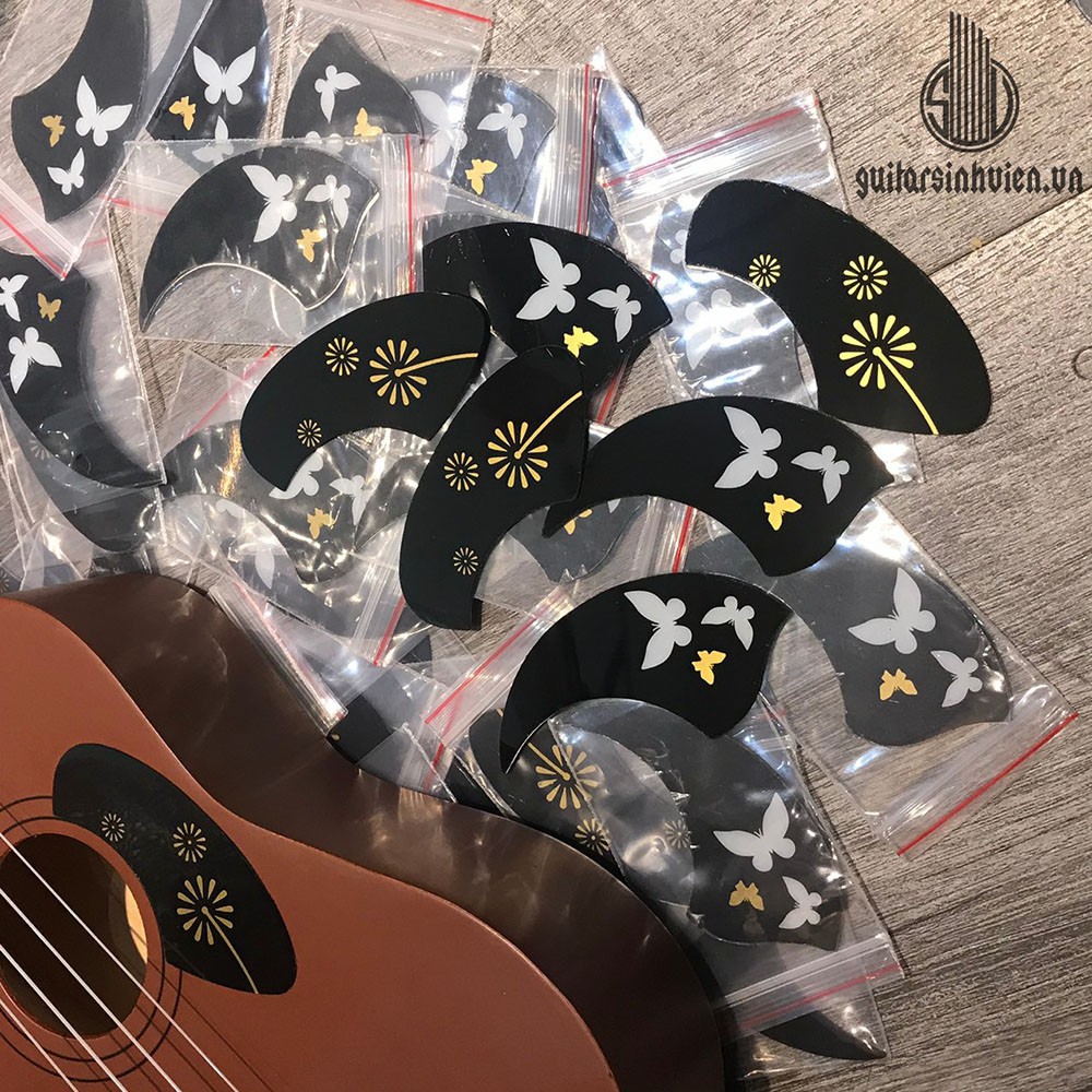 Miếng dán chống trầy UKULELEMiếng dán guitar giúp cây đàn không bị xước khi chơi những điệu quạt, những điệu tác động trực tiếp tới mặt đàn.