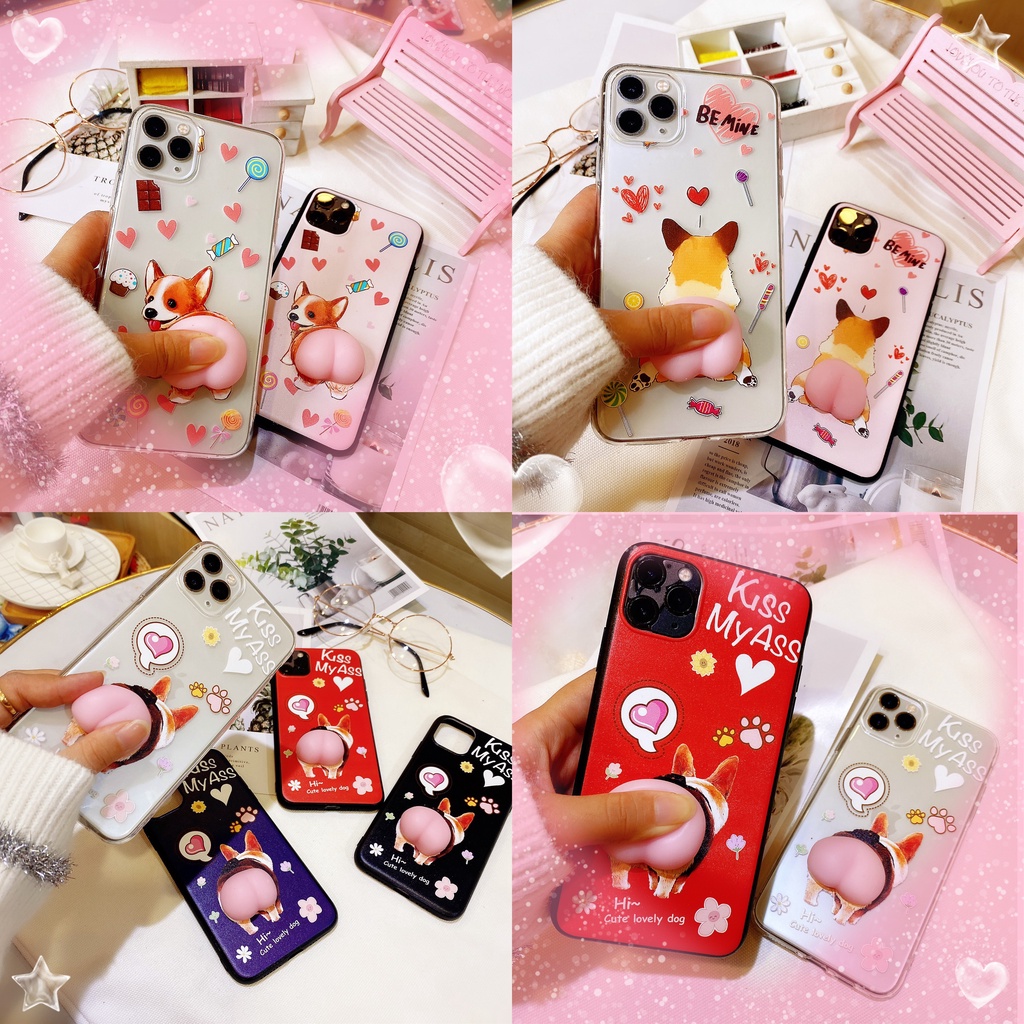 Miếng dán điện thoại mông đào silicon, quả mông cute dán ốp điện thoại shin, corgi,doremon