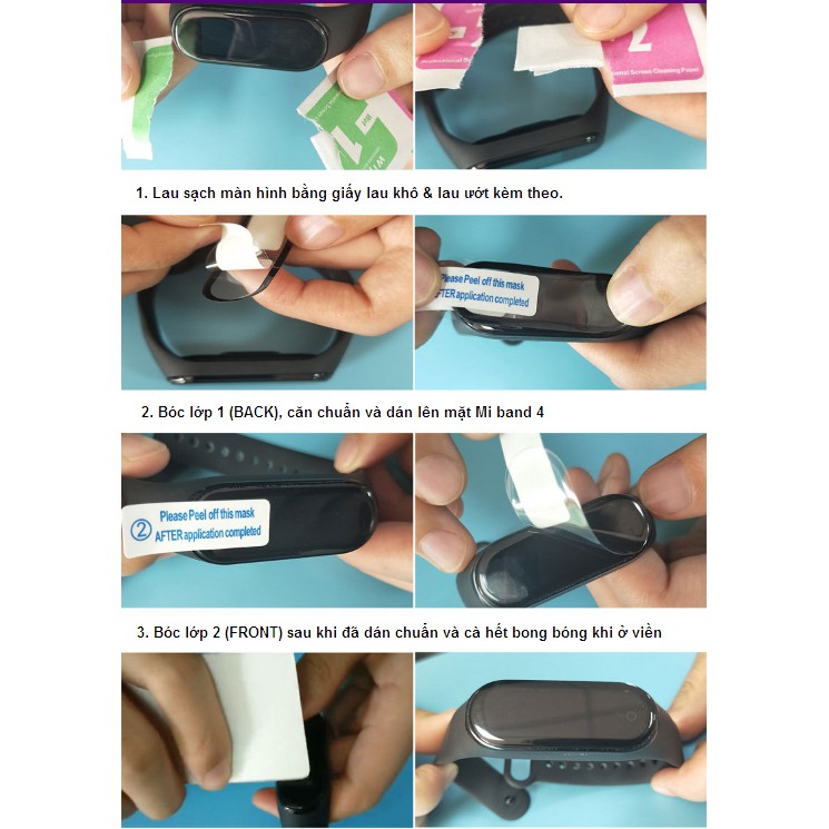 B2: Đây là miếng dán 3 lớp, lớp giữa là PET full màn sẽ dán lên màn hình BIP, lớp 1 có số 1 (Back) bóc đầu tiên, lớp 3 có số 2 (Front) bóc sau đó.