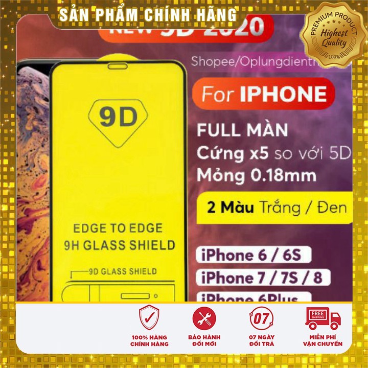 - Kính cường lực 9D cho iPhone 6-7-s-Plus có độ cứng đạt chuẩn 9H bảo vệ an toàn cho màn hình iPhone tốt hơn gấp 5 lần các loại kính cường lực thế hệ cũ. Kính là kính full màn