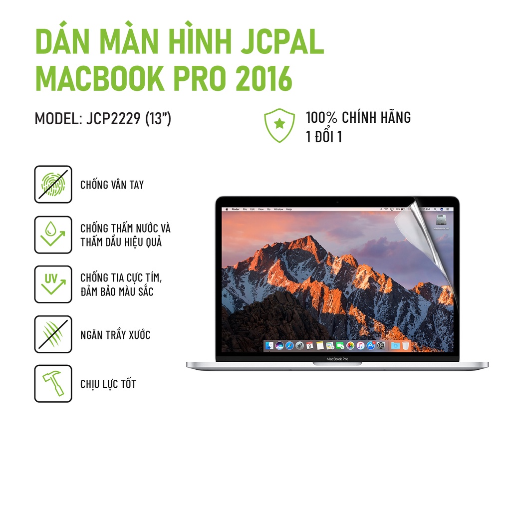 Máy tính & Laptop > Phụ Kiện Máy Tính > Miếng Dán & Ốp Laptop || Miếng dán màn hình JCPAL Macbook Pro 2016 - 13 inch chống ánh chói, bám vân tay tốt, chống thấm nướcCòn hàng