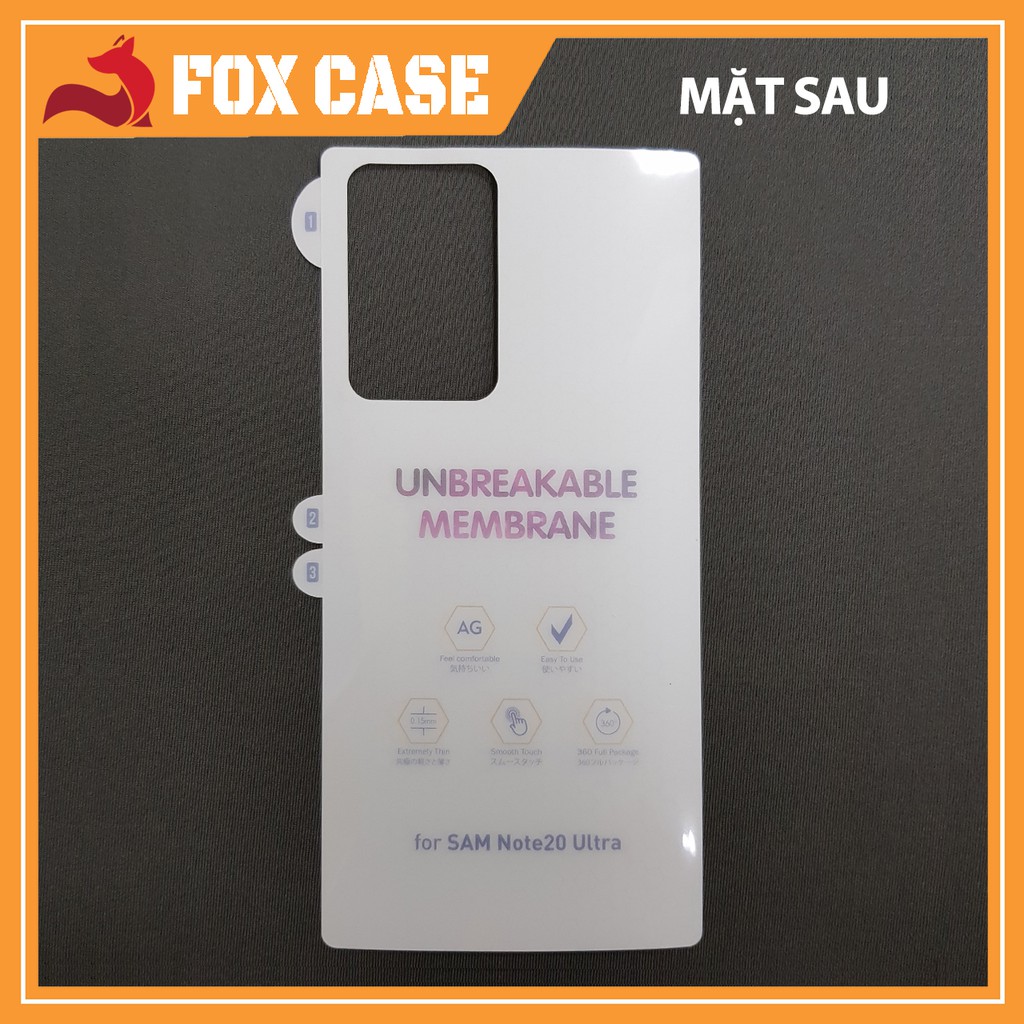 MIẾNG DÁN PPF TRONG VÀ NHÁM, BẢO VỆ 2 MẶT TRƯỚC SAU CHO SAMSUNG GALAXY NOTE 20 SERIES, S21 SERIES, S22 SERIES - FOX CASE------------------------------------