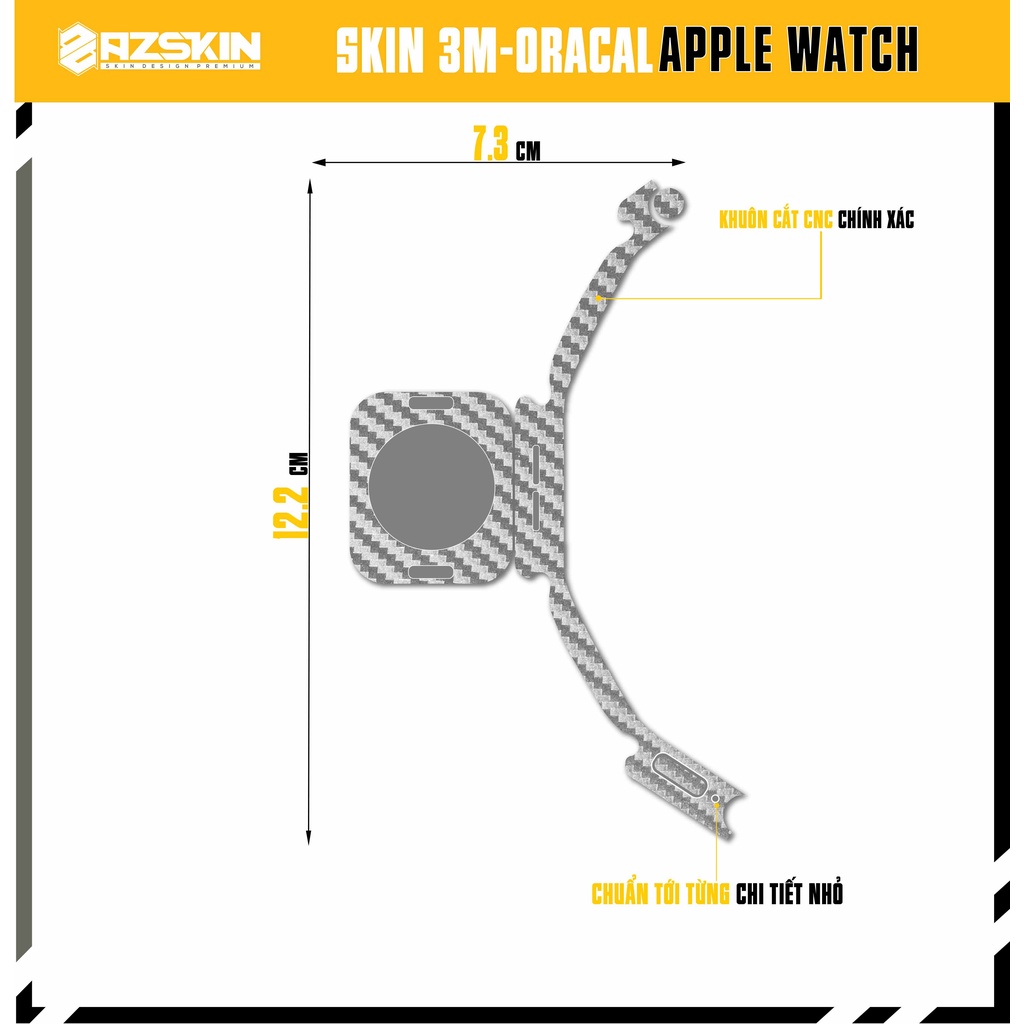 Miếng Dán Skin Apple Watch Oracal Cacbon Xám |SK_AWCB01| Chất Liệu Film Nhập Khẩu, Tạo Khuôn Cắt CNC, Dễ Dán Tại Nhà