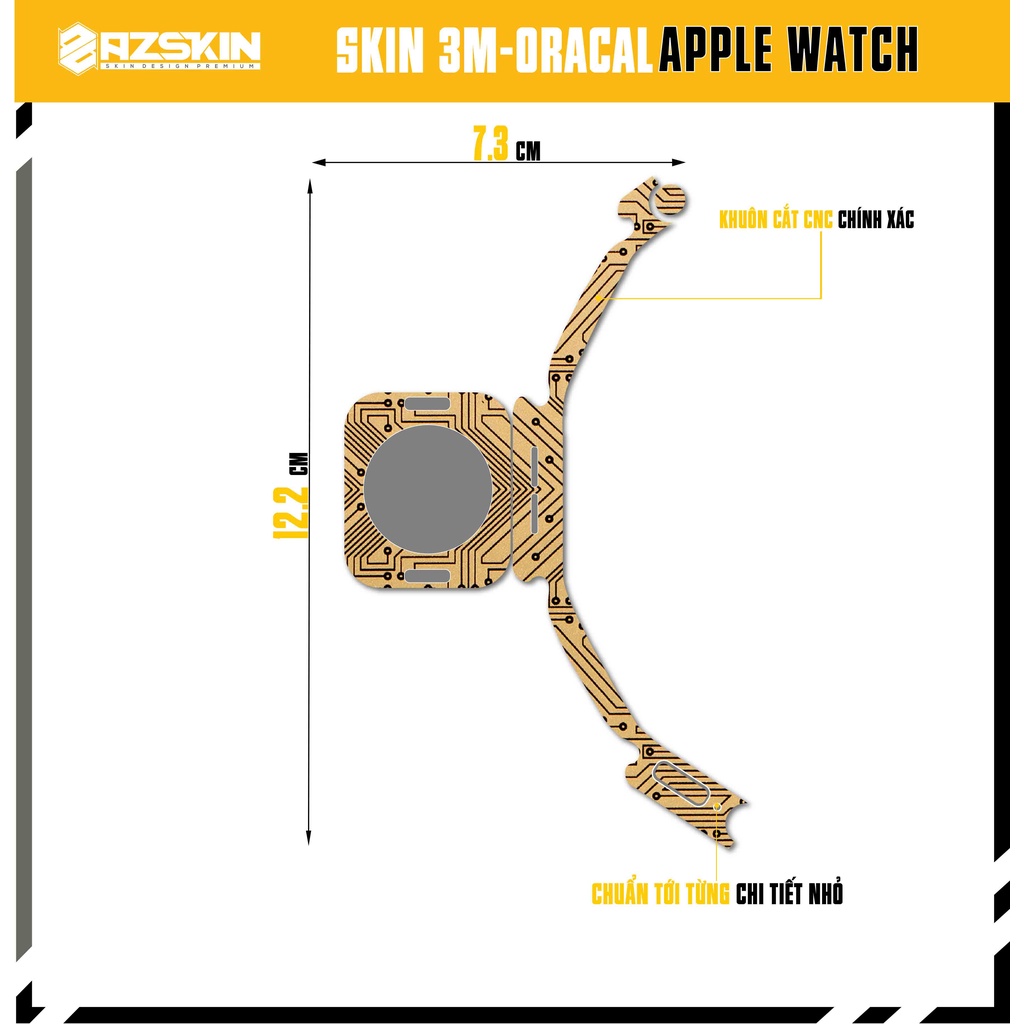 Miếng Dán Skin Apple Watch Oracal Vi Mạch Gold |SK_AWVM02| Chất Liệu Film Nhập Khẩu, Tạo Khuôn Cắt CNC, Dễ Dán Tại Nhà