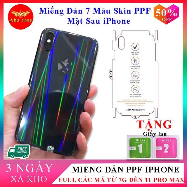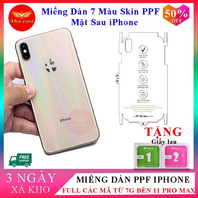 [FREE SHIP CHO ĐƠN HÀNG TỪ 50K TRỞ LÊN]Miếng dán Skin PPF 7 màu mặt sau cho các dòng iphone 7, 7plus, 8, 8plus, X, Xs, Xr, Xsmax, 11, 11 pro,11 pro max, 12, 12 pro, 12 pro max, 13, 13 pro, 13 pro max