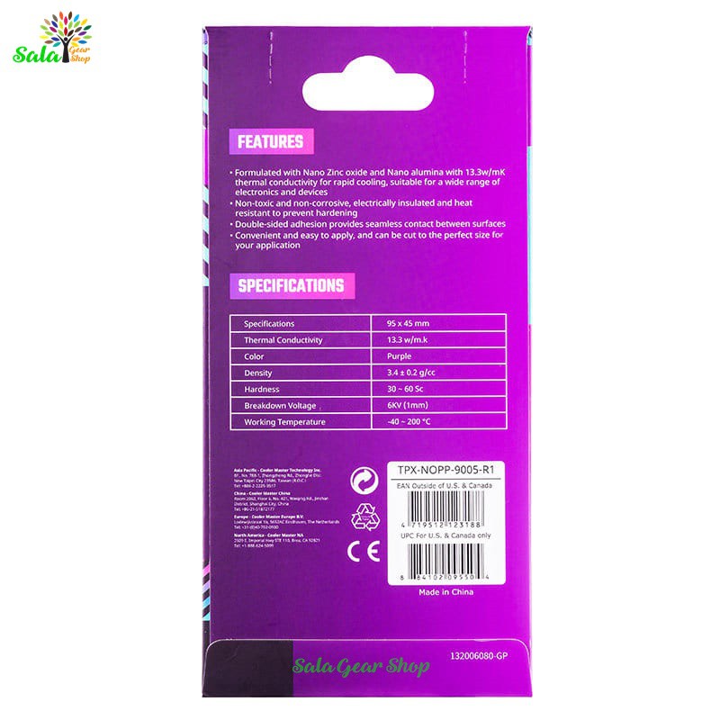 THÔNG TIN SẢN PHẨM:Tên sản phẩm: Miếng dán tản nhiệt Cooler Master Thermal Pad 95x45mm