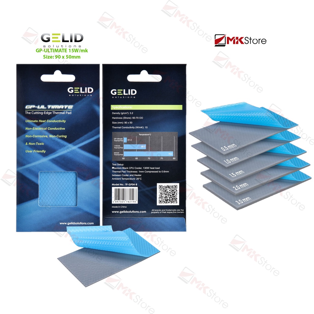 - Tên sản phẩm: Miếng dán tản nhiệt Gelid GP-Ultimate 15W/mk