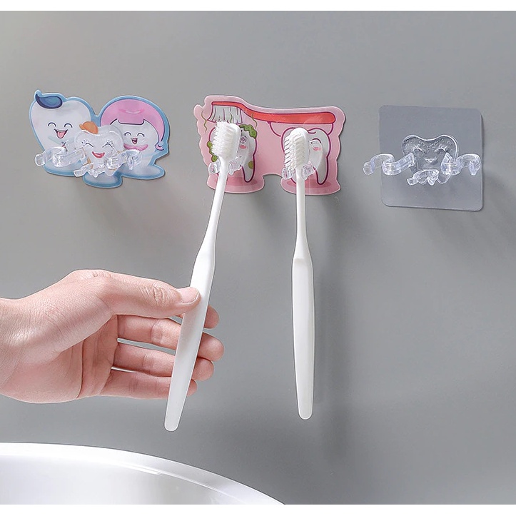 ** Sản phẩm có hình chiếc răng xinh xắn giúp tô điểm cho không gian phòng tắm nhà bạn.** Kèm theo sản phẩm có miếng keo dán để cố định bàn chải ở những vị trí mong muốn. Không cần khoan vít đục.