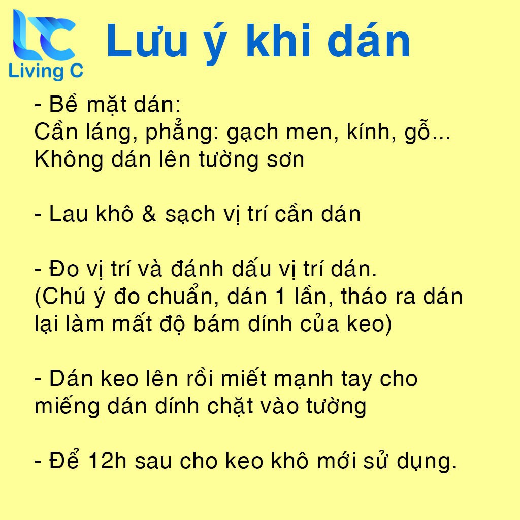 - Miếng dán dính chặt trên các bề mặt láng & phẳng như: gạch men, kính, mặt tủ lạnh, mặt đá, gỗ láng... (Không lắp giữa 2 khe hở của gạch ốp