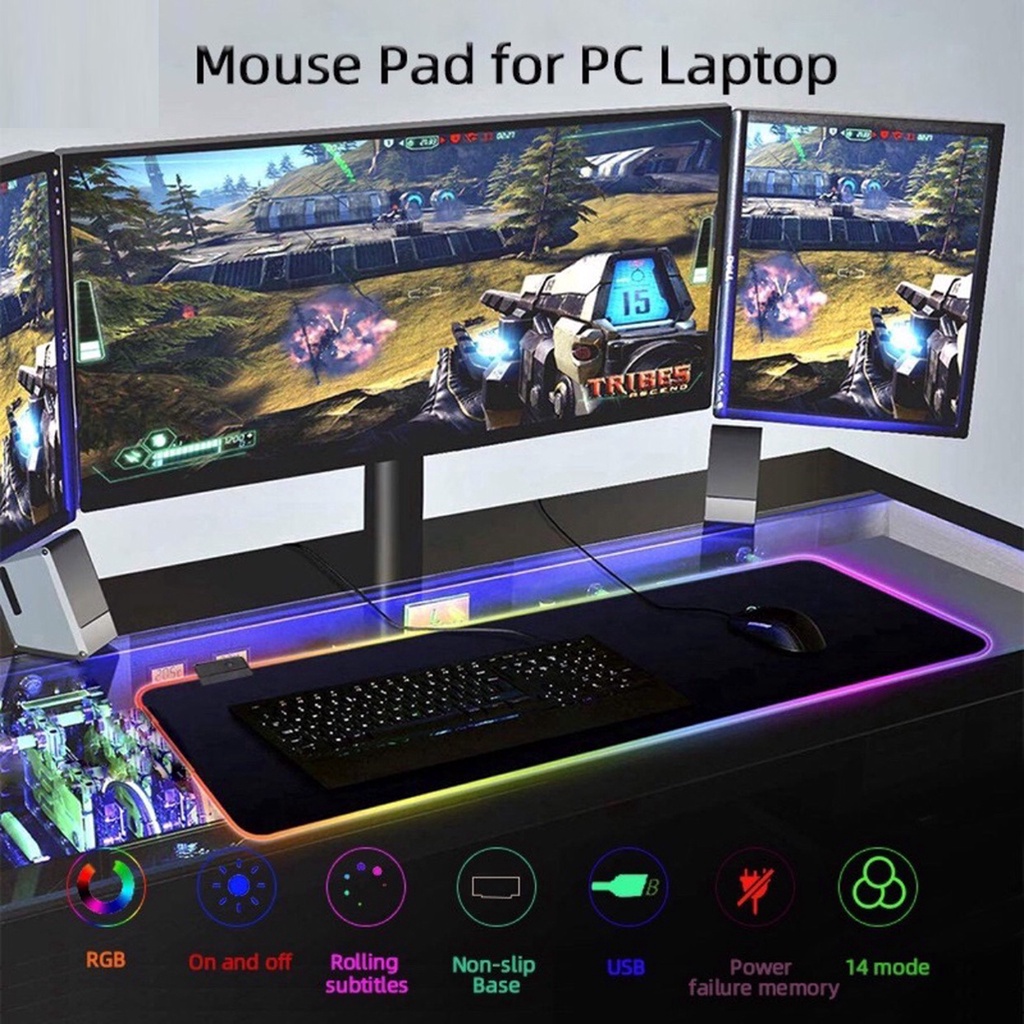 Máy tính & Laptop > Phụ Kiện Máy Tính > Bàn Di Chuột || Miếng lót chuột gaming LED RGB cỡ lớn (80 x 30 cm), Pad chuột chơi game LED RGB nhiều màu dày 4mm siêu bềnCòn hàng