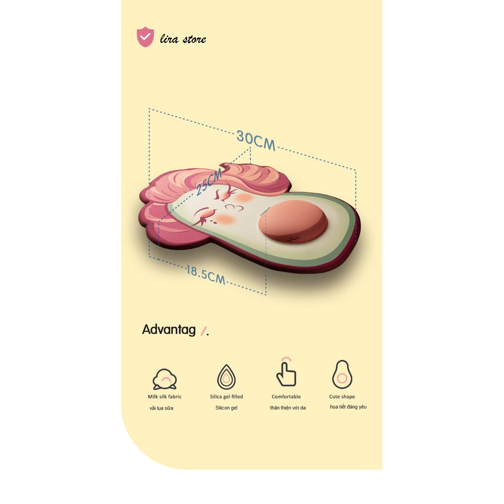 Miếng lót chuột/ Bàn di chuột silicon họa tiết quả bơ cực xịn🌈 Chất liệu: vải lụa sữa + gel silicon cực mềm