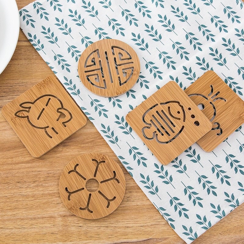 * Miếng Lót Cốc Bằng Gỗ Cách Nhiệt Chống Nóng Họa tiết trang trí ngộ nghĩnh, thích thú.